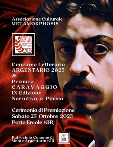oggi si è svolta la premiazione del Concorso Letterario Argentario 2025 & Premio Caravaggio – IX Edizione, nella quale ho avuto l’onore di essere premiato come vincitore nella categoria 7, Sez. B – Narrativa Inedita.